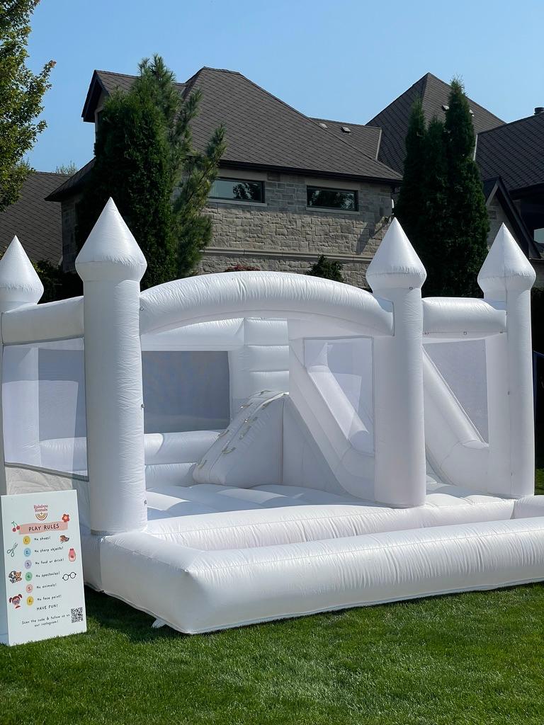 Double the fun with our White Bouncy Castle featuring a slide and ball pit. Perfect for birthdays, parties, and community events.